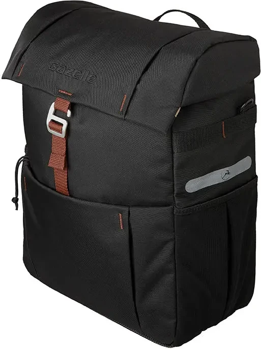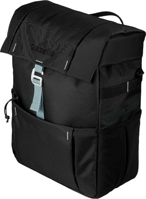 De enkele fietstas van Gazelle is een fijne fietstas voor dagelijks en recreatief gebruik. De tas heeft een inhoud van 18.5 kilogram, waardoor je veel spullen kunt meenemen. Zo is de tas voorzien van een hoofdvak voor grotere spullen, een voorvak zodat je essentiële spullen bij de hand hebt en een elastisch vak. Het laatste vak is ideaal om je jas op te bergen als je het te warm krijgt. Je kunt de tas door de geïntegreerde eenvoudig bevestigen aan je bagagedrager. Tijdens een tussenstop kun je de tas dus eenvoudig afnemen en vervolgens drager als schoudertas door de schouderband. Mocht het regenen? Geen probleem! Er wordt een regenhoes meegeleverd. Verder ga je met deze enkele fietstas veilig op stap door de reflecterende elementen. Hierdoor ben je beter zichtbaar voor het overige verkeer.